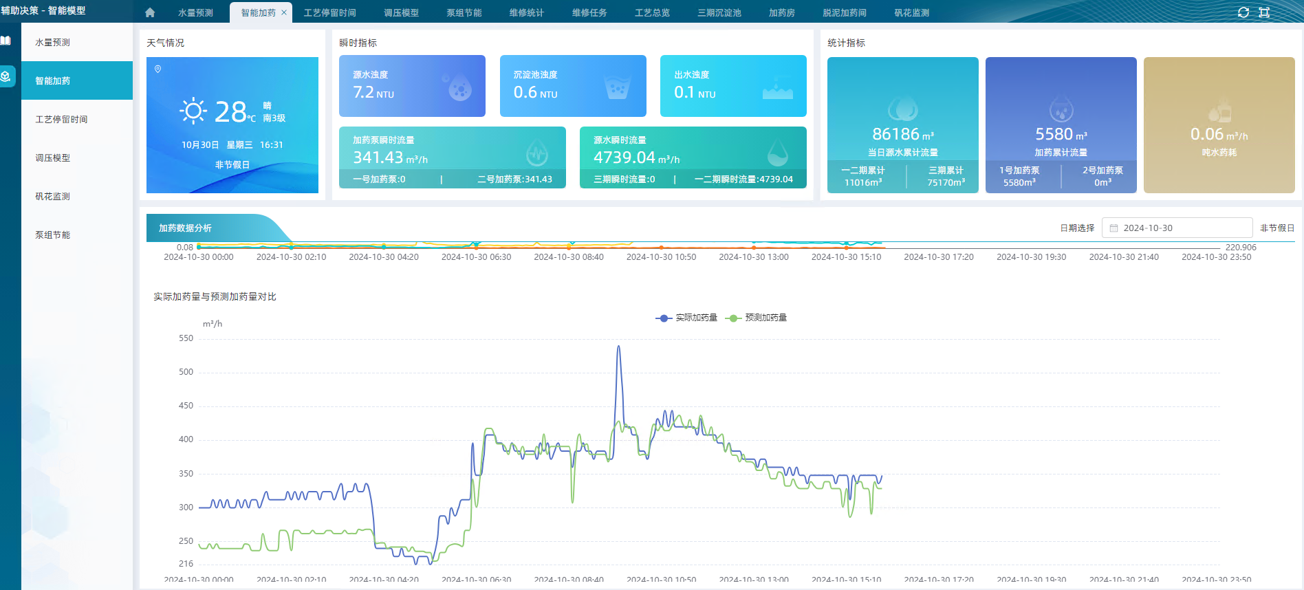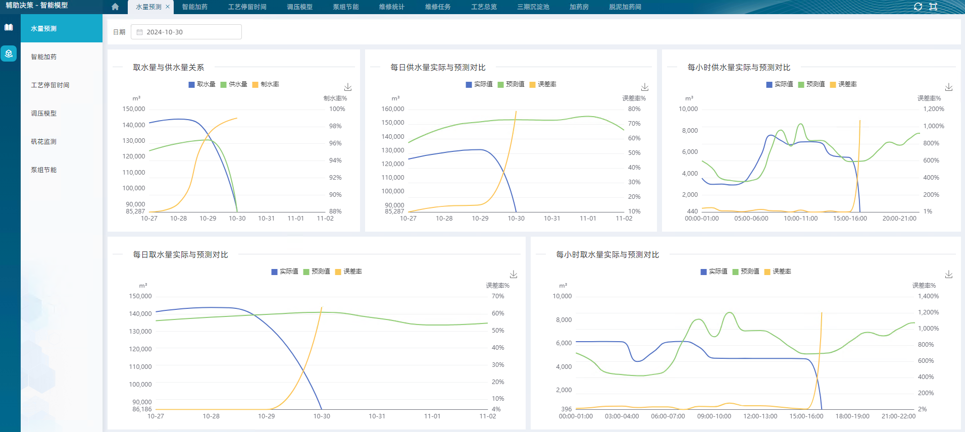 以多維度統計圖表的方式展現績效結果,識別凈水廠運行管理薄弱環節,為水廠運行管理優化提供豐富的數據展示企業門戶和決策支持,使得管理者的決策更加綜合、合理、可行,形成智能化、科學化決策,為全廠可視化、精細化、智慧化運營提供數據依據和強有力的支撐。